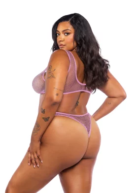 Think Pink Plus Size Rhinestone Bralette 2-Piece Short Set – Pink