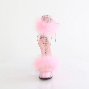 6″ Heel, 1 3/4″ PF Marabou Fur Ankle Cuff Sandal, Back Zip