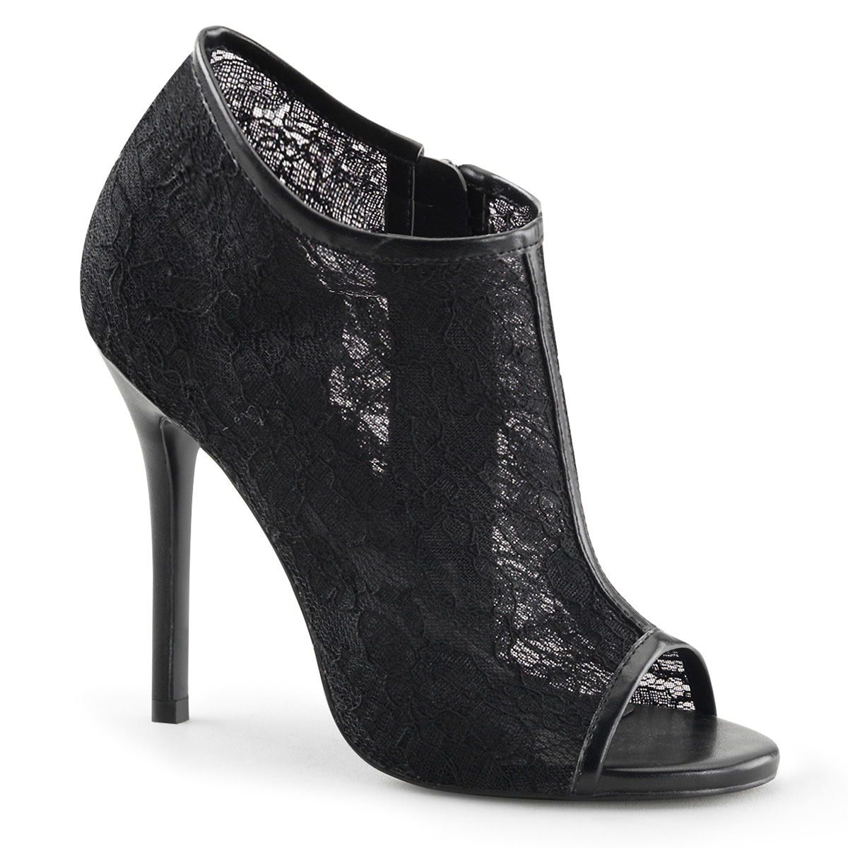 5″” (12.7cm) Heel, Open Toe Bootie W/ Lace Overlay, Inner Side Zip Closure Lace Mesh