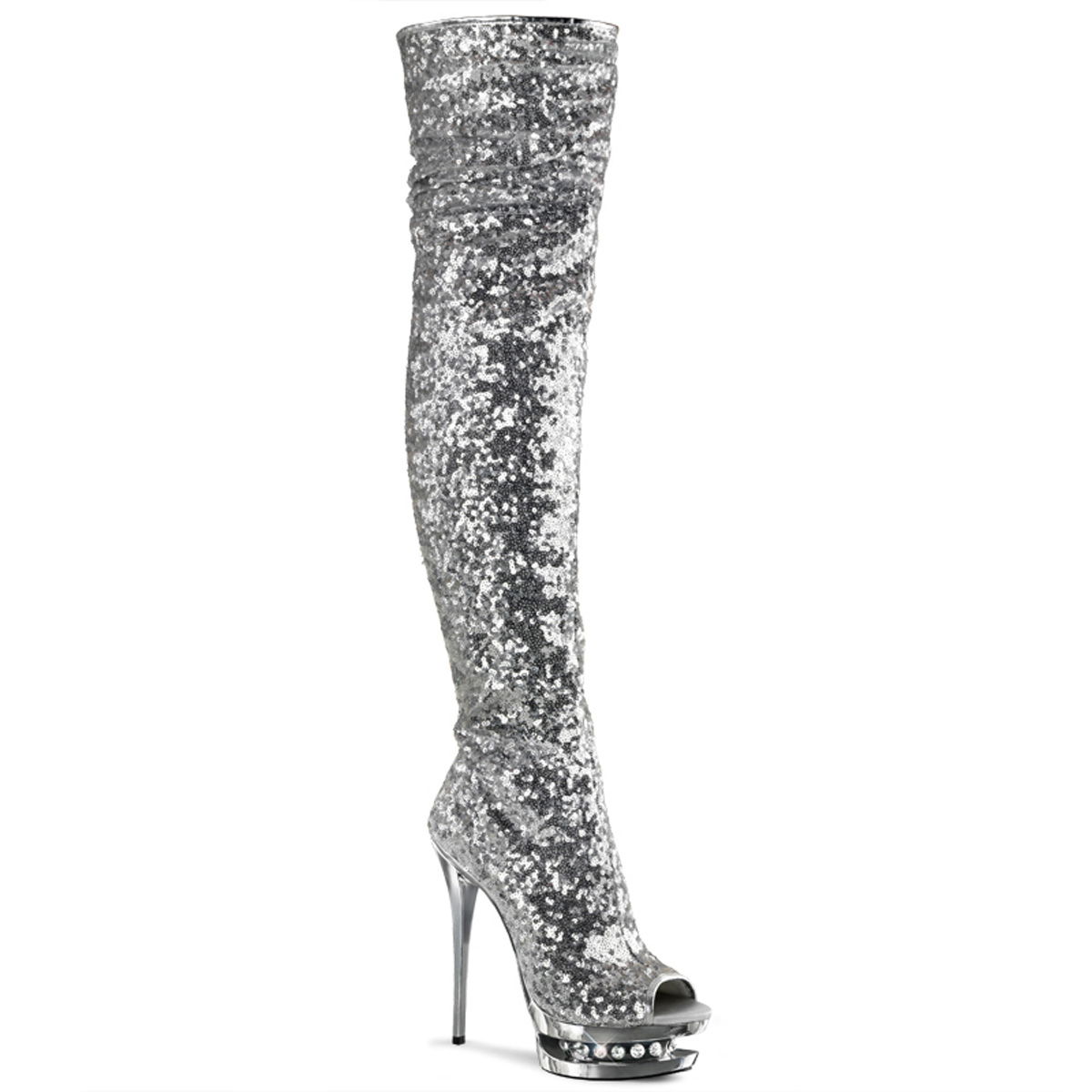 6″ Heel, 1 1/2″ Dual PF Open Toe Thigh Boot