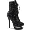 *6″ Heel, 1 1/2″ PF Lace-Up Sequined Ankle Boot, Side Zip