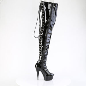 6″” (152mm) Stiletto Heel, 1 3/4″” (45mm) Platform D-Ring Lace-Up Back Stretch Crotch Boot, Full-Length Inner Side Zip Closure
