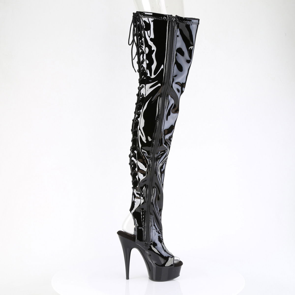 6″” (152mm) Heel, 1 3/4″” (45mm) Platform Open Toe/Heel Lace Up Back Stretch Crotch Boot, Full Inner Side Zip Closure