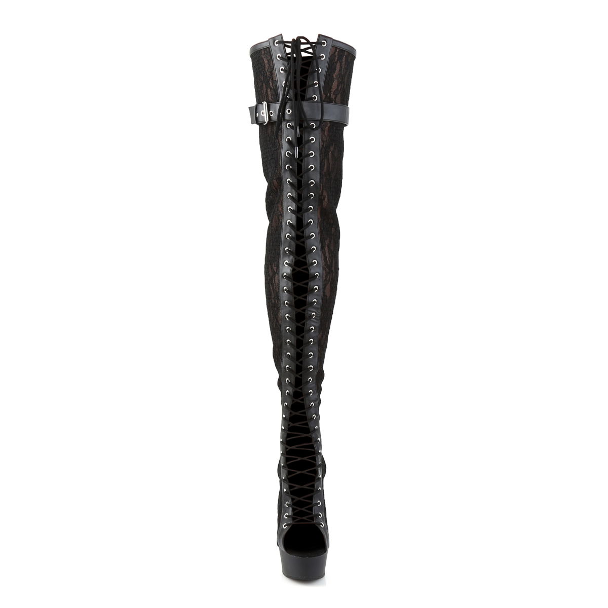 6″ Heel, 1 3/4″ PF Peep Toe Lace-up Thigh Boot, Back Zip