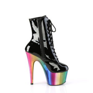 7″ Heel, 2 3/4″ Chromed PF Lace-Up Ankle Boot, Side Zip