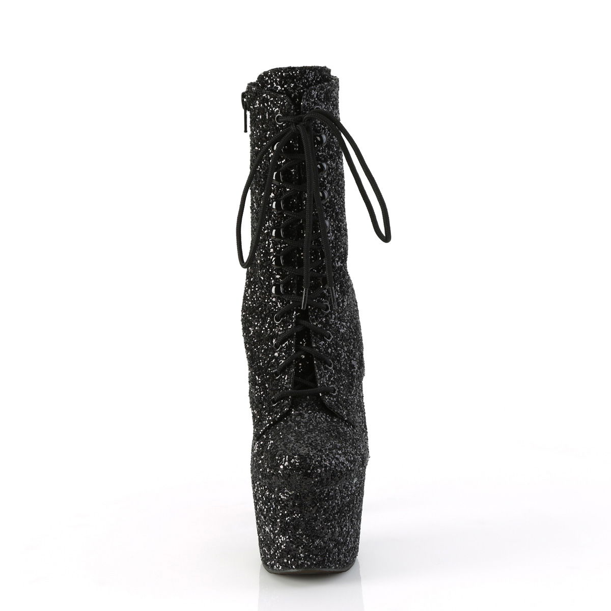 7″ Heel, 2 3/4″ PF Lace-Up Glitter Ankle Boot, Side Zip