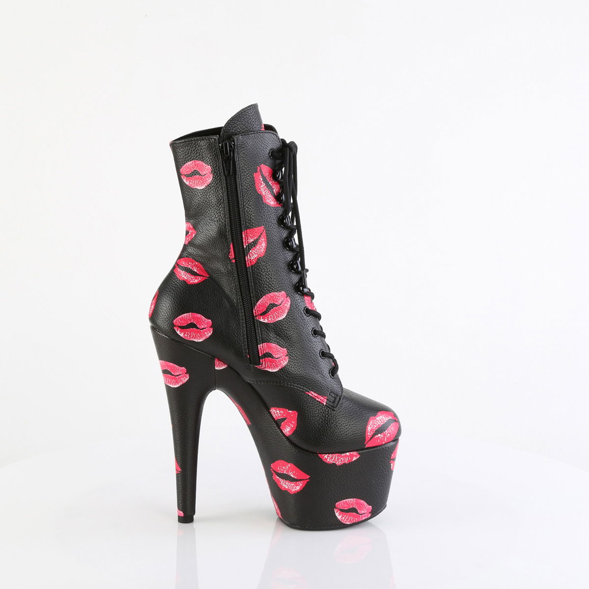 7″ Heel, 2 3/4″ PF Lace-Up Lips Print Ankle Boot, Side Zip