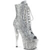 **7″ Heel, 2 3/4″ PF Open Toe Lace-Up Ankle Boot, Side Zip