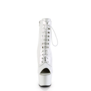 7″” (178mm) Heel, 2 3/4″” (70mm) Platform Peep Toe Lace-Up front Ankle Boot, Inner Side Zip Closure