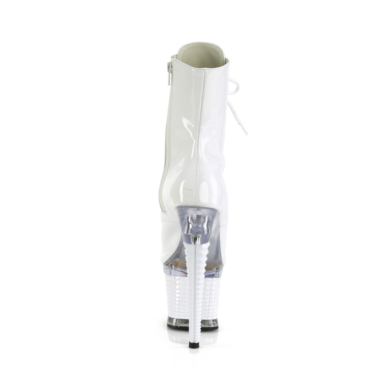 7″” (178mm) Heel, 3″” (76mm) Textured Platform Open Toe Lace-Up Front Ankle Boot, Inner Side Zip Closure