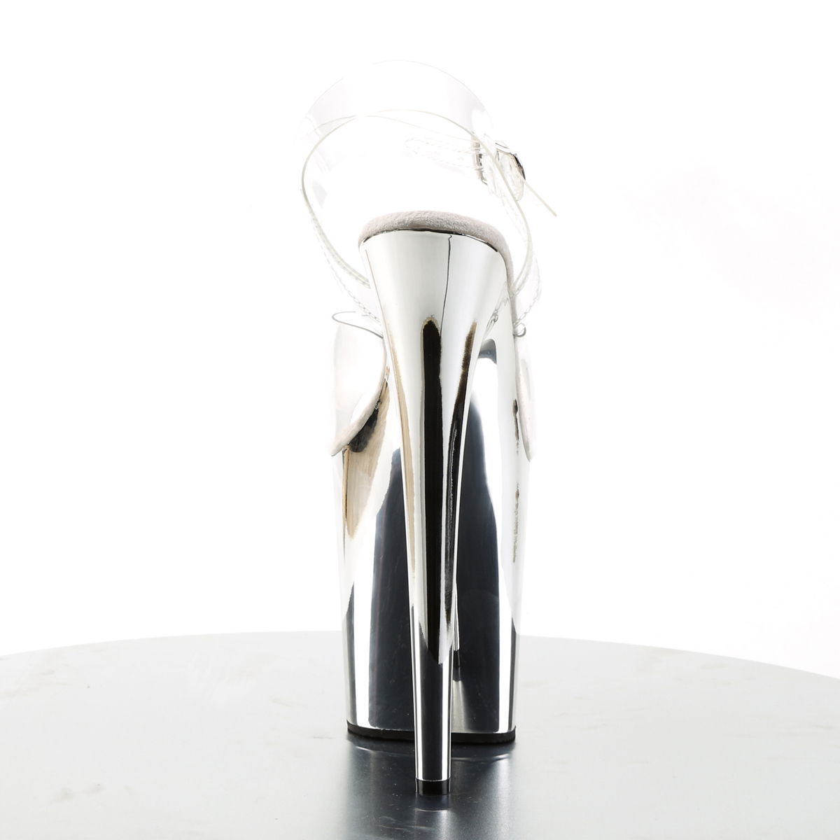 8″” (20.3cm) Stiletto Heel, 4″” (10.2cm) Platform Ankle Strap Sandal with Chrome Plated Bottom