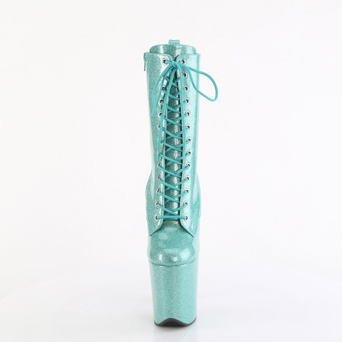 8″” (200mm) Heel, 4″” (100mm) Platform Lace-Up Front Ankle Boot Featuring Back Pull Loop, Inner Side Zip Closure