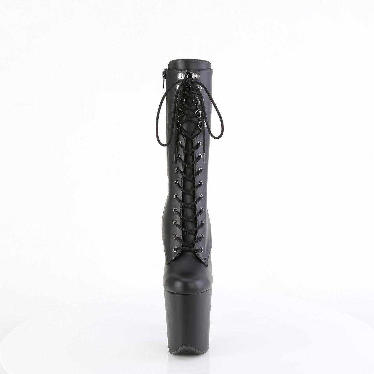 8″” (200mm) Heel, 4″” (100mm) Platform Lace-Up Front Mid Calf Boot, Inner Side Zip Closure