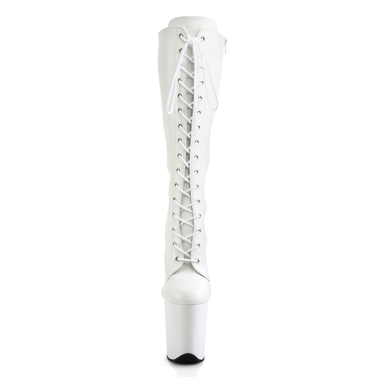8″ Heel, 4″ PF Lace-Up Stretch Knee Boot, Side Zip