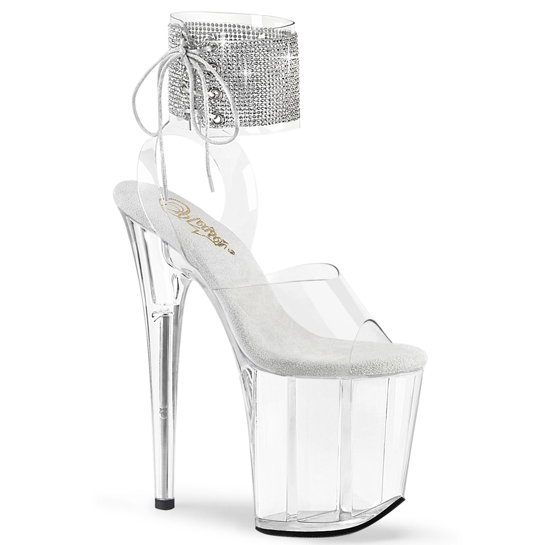 8″” (200mm) Heel, 4″” (100mm) Platform Rhinestone Embellished Ankle Cuff Sandal