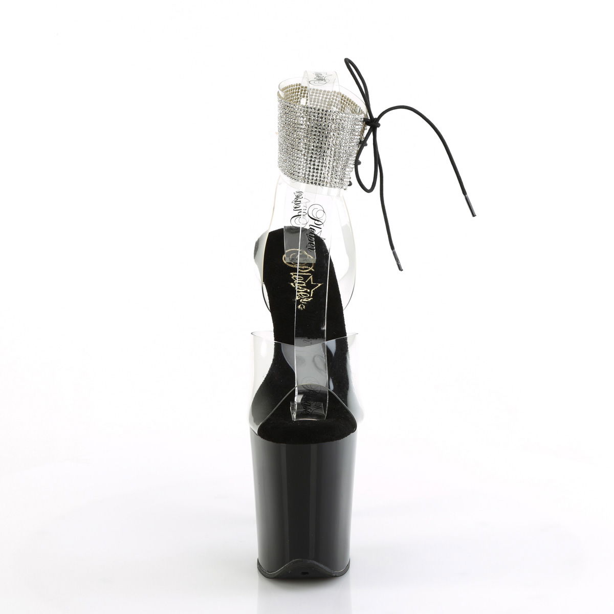 8″” (200mm) Heel, 4″” (100mm) Platform Rhinestone Embellished Ankle Cuff Sandal