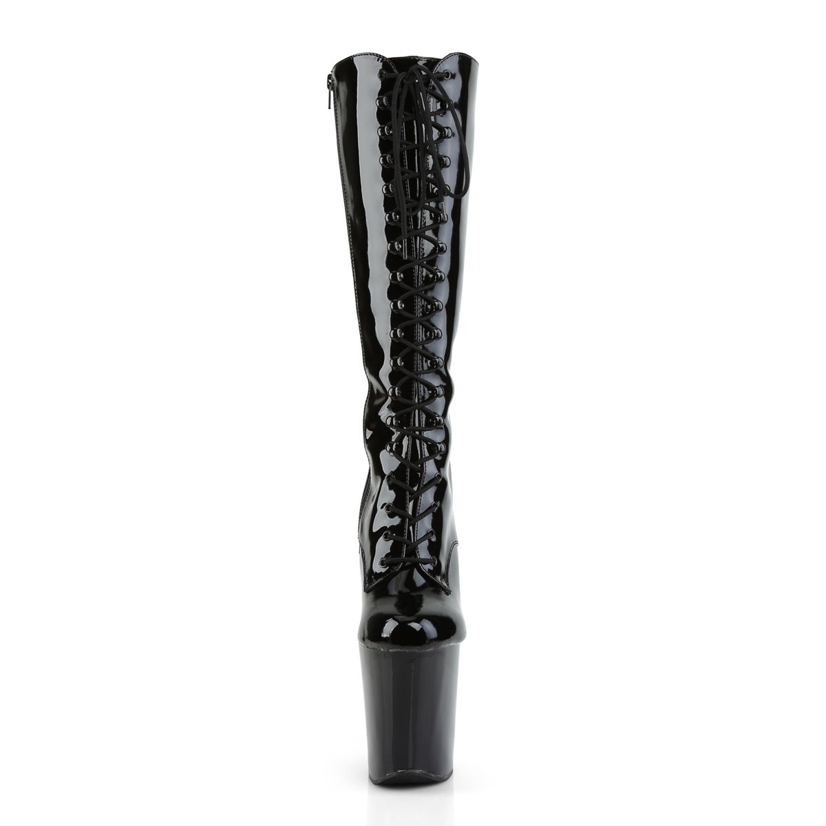 8″” (20.3cm) Spike Heel, 4″” (10.2cm) Platform Calf Boot, Full Inner Side Zip Closure