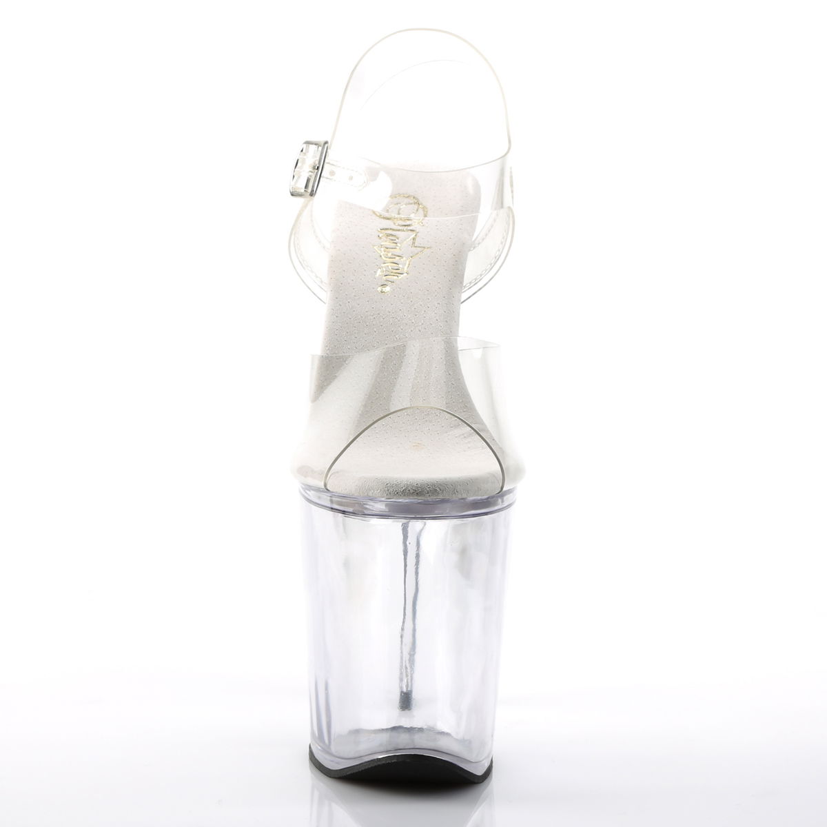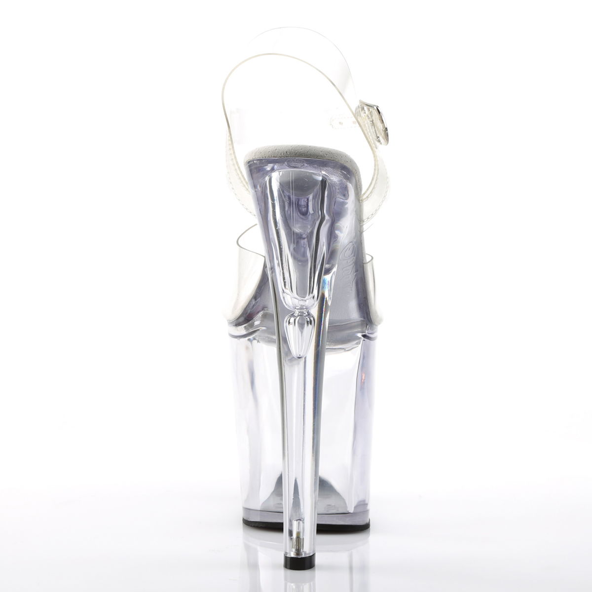 8″” (20.3cm) Spike Heel, 4″” (10.2cm) Platform Ankle Strap Peep Toe Sandal, Clear