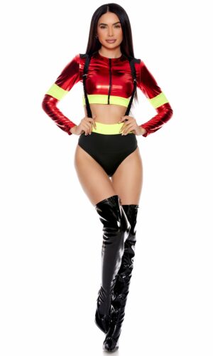 You’ll never be short on hoses to choose from when you’re starting fires in our Got Hose Sexy Firefighter Costume! With its shiny top, cheeky shorts with matching suspenders, Halloween has never looked hotter.